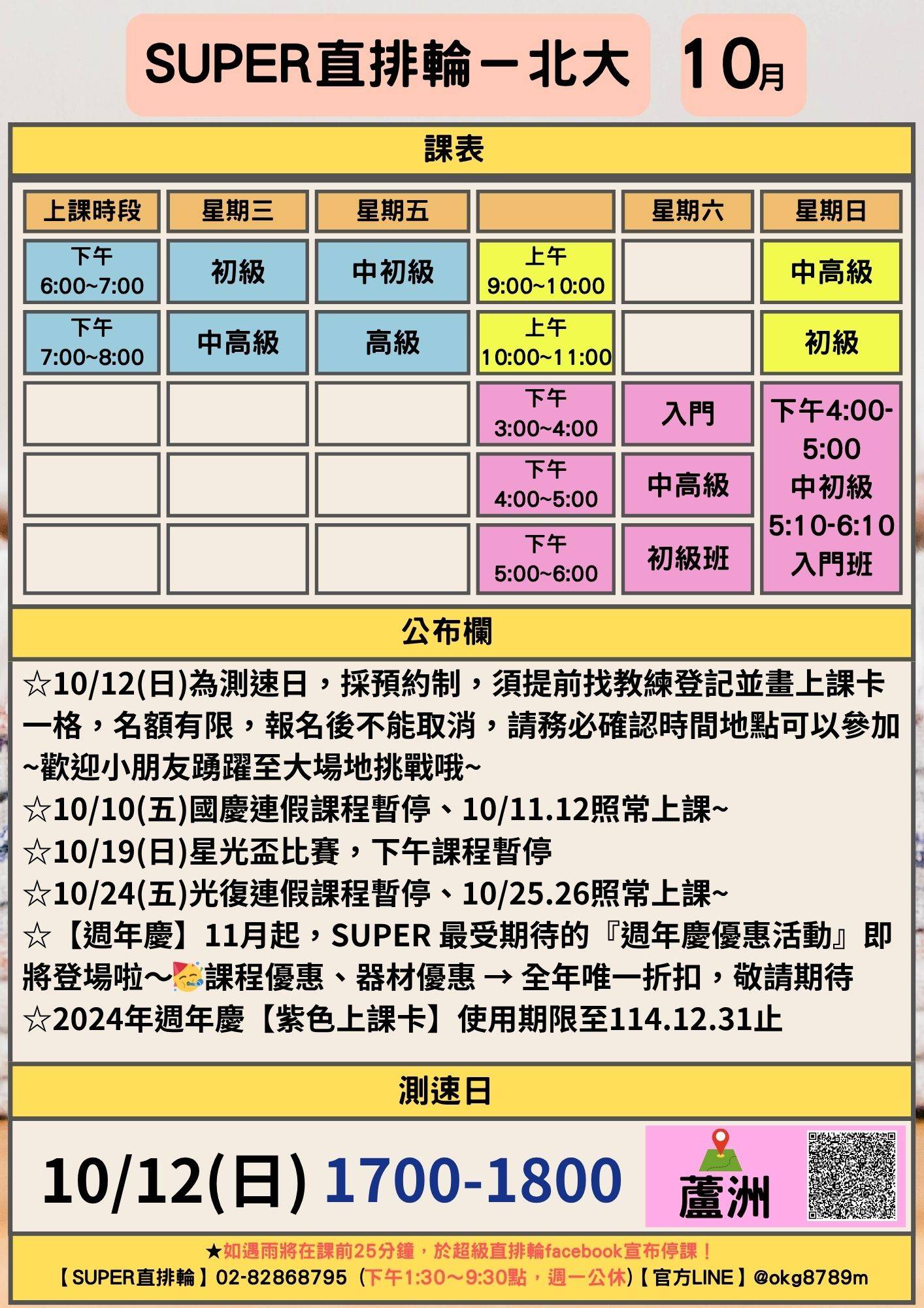 ◆2025年10月課表及公告欄