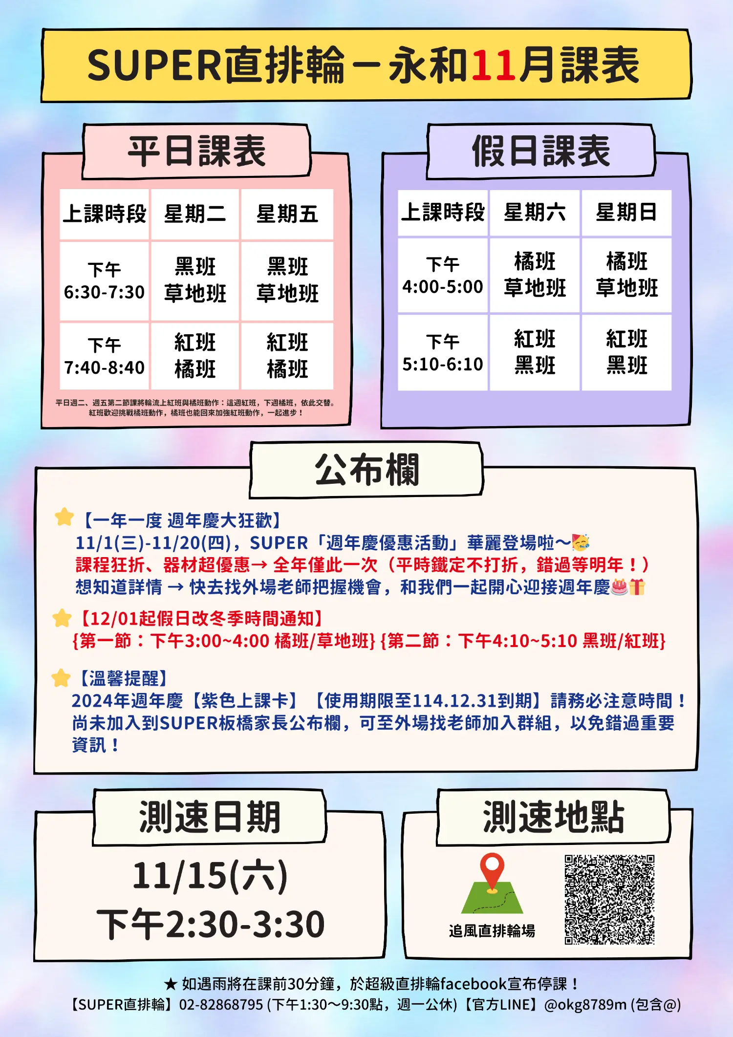 ◆遇雨課程暫停,請於課前30分鐘密切注意臉書『超級直排輪』粉絲專頁!