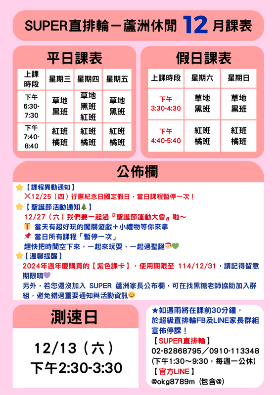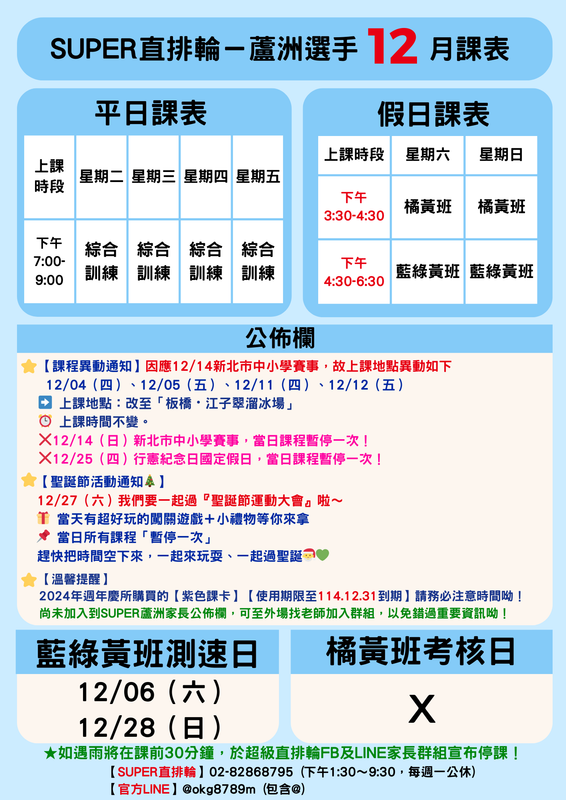 ◆遇雨課程暫停,請於課前30分鐘密切注意臉書『超級直排輪』粉絲專頁!