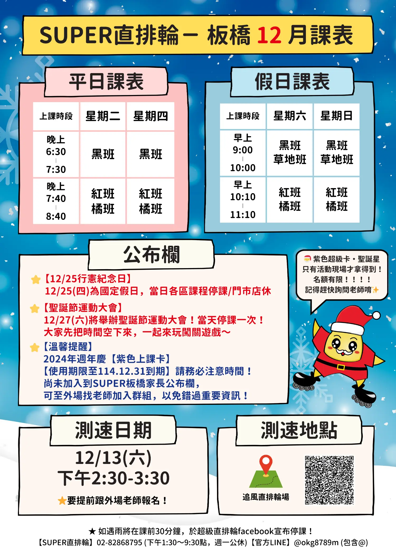 ◆遇雨課程暫停,請於課前30分鐘密切注意臉書『超級直排輪』粉絲專頁!