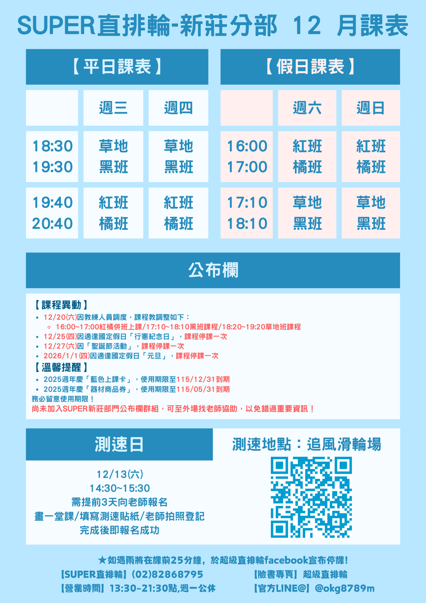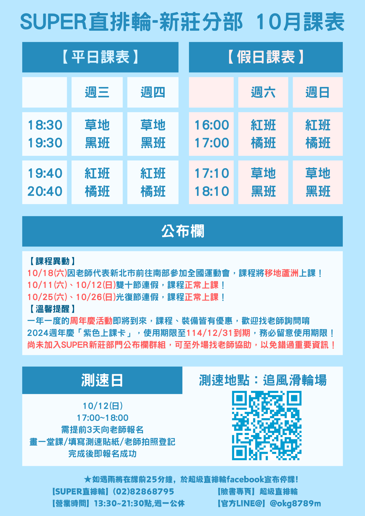 ◆遇雨課程暫停,請於課前25分鐘密切注意臉書『超級直排輪』粉絲專頁!
