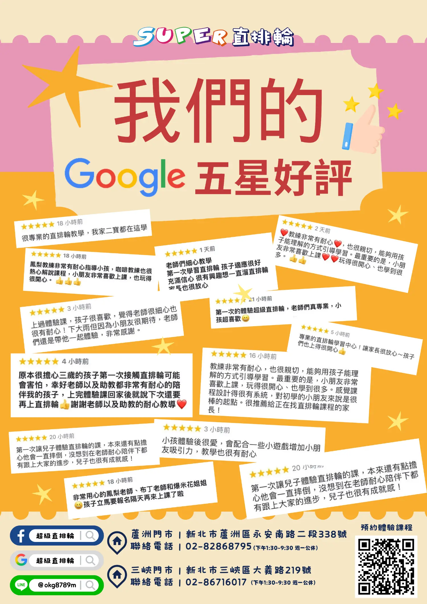 1. 新生可直接填表,預約體驗https://goo.gl/BuW3xq